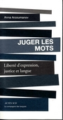 JUGER LES MOTS. LIBERTÉ D’EXPRESSION, JUSTICE ET LANGUE d’Anna Arzoumanov Actes Sud, « La compagnie des langues », 2025, 176 pages, 19 €