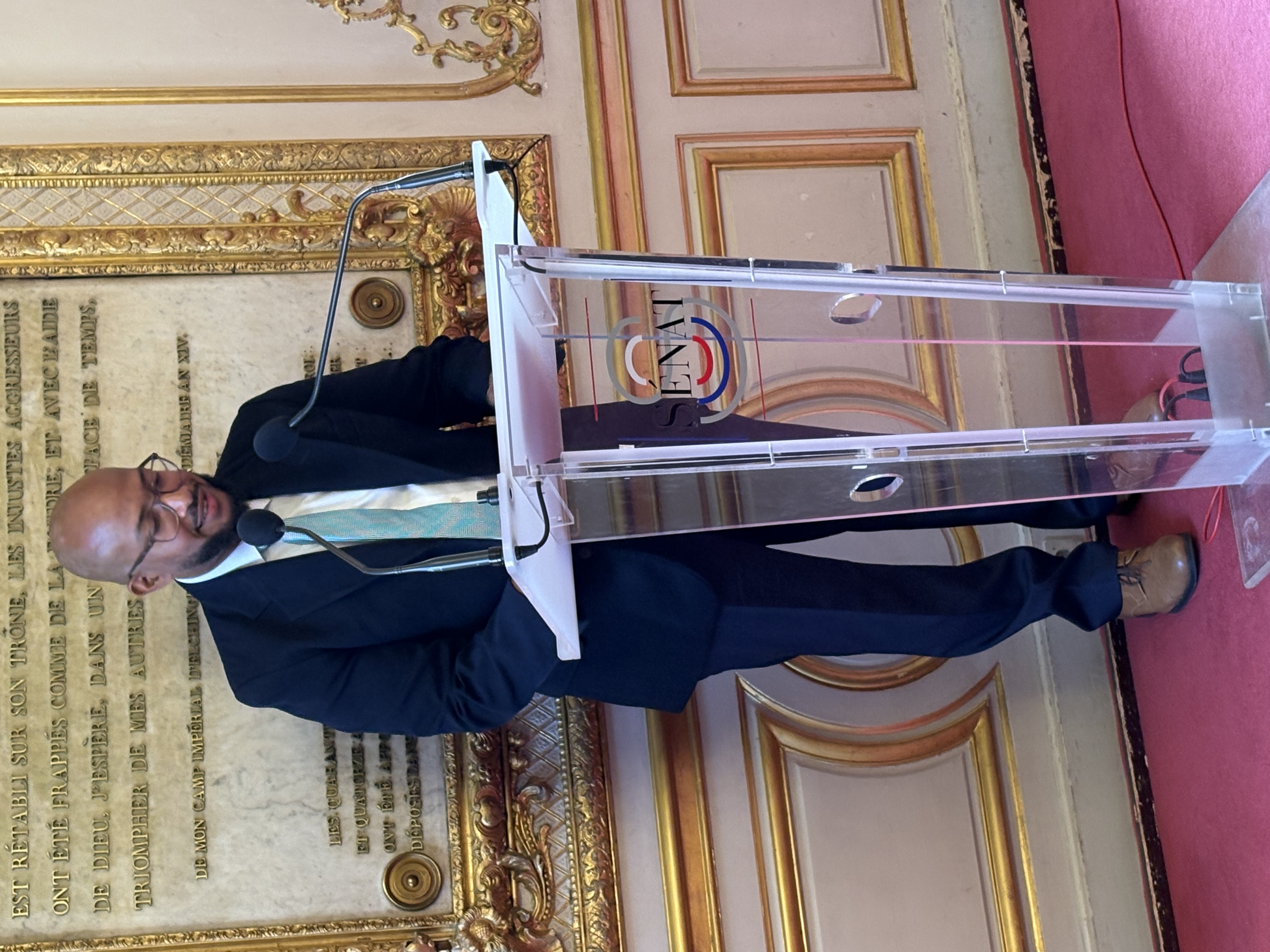 En janvier 2025, les 829 Alliances françaises des cinq continents ont été invitées à participer à la Plume d’Or. 88 Alliances ont réuni 1 321 participants au concours. Après correction des copies, le premier lauréat s’est vu offrir un voyage pour Paris et sept nuitées d’hôtel. Calvin Archibald, apprenant de l’Alliance française de Trinité-etTobago, est le lauréat 2026. Il a reçu son prix le 23 mars dans les salons du Sénat, des mains de Christian Jambet, président de DLF, en présence d’Olivia Richard, sénatrice des Français établis hors de France, qui parraine le concours, d’Alain Majani d’Inguimbert, consul de Trinité-et-Tobago, de Jean Pruvost, vice-président de DLF et de Françoise de Oliveira, créatrice de la Plume d’or