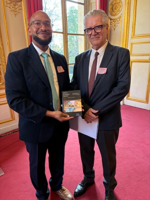 Calvin Archibald avec monsieur Alain Majani d’Inguimbert, consul de Trinité-et-Tobago.