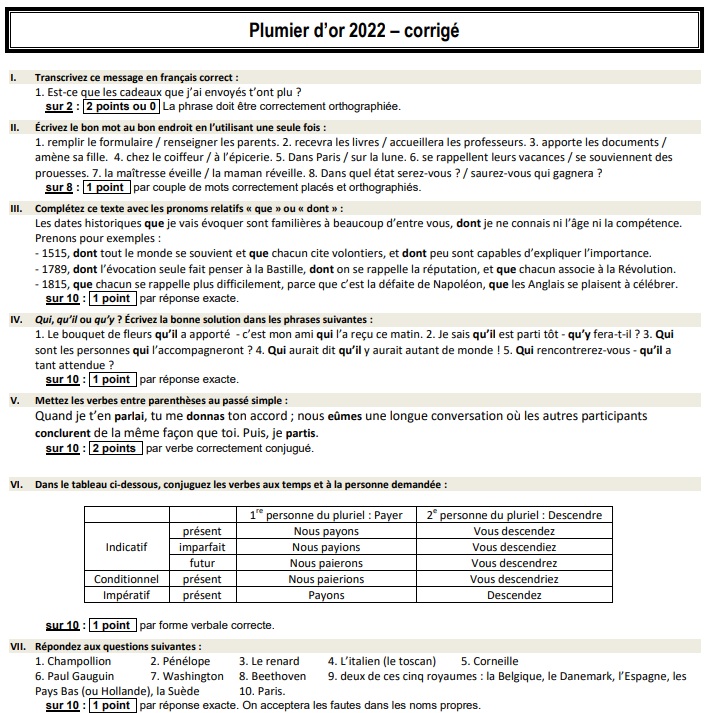 Corrigé du Plumier d'or 2022