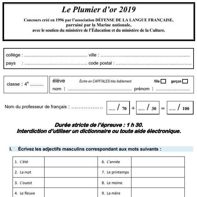 Epreuve du Plumier d'or 2019