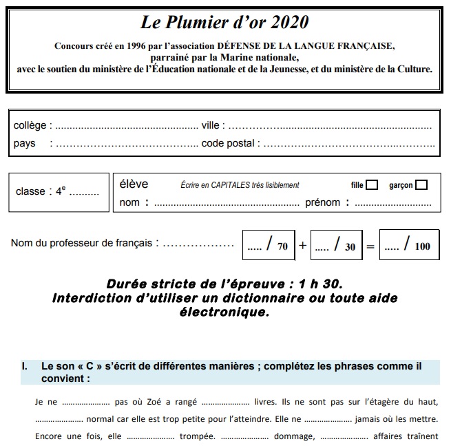Epreuve du Plumier d'or 2020