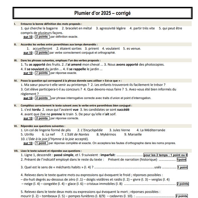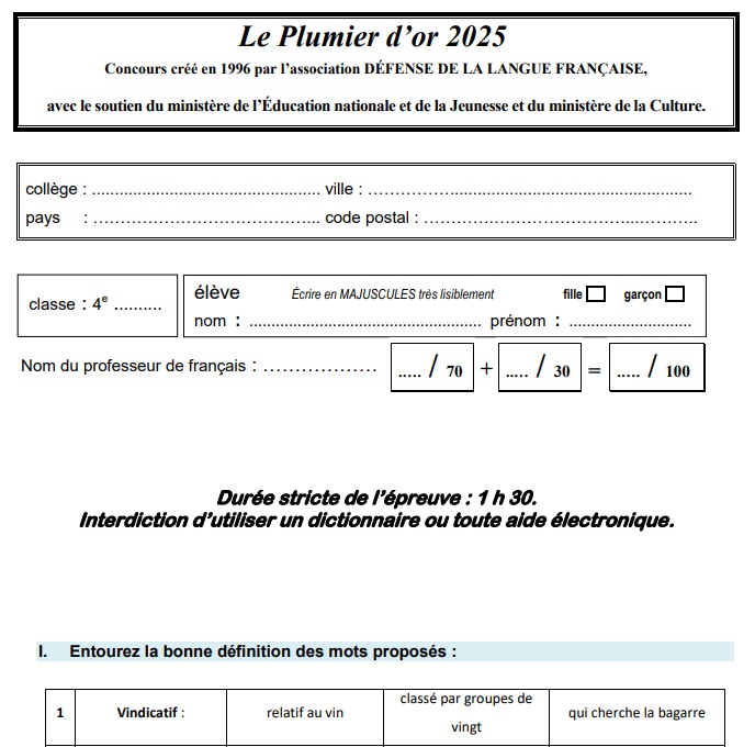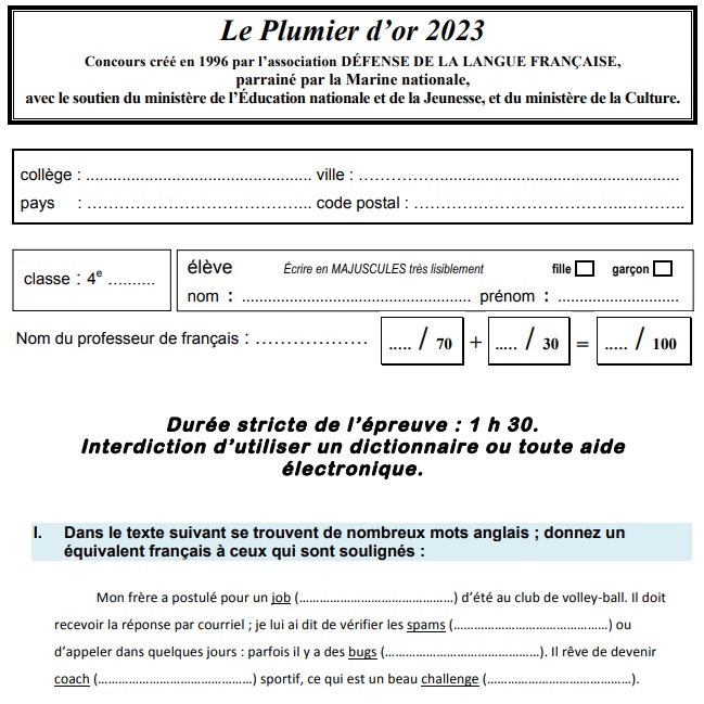Epreuve du Plumier d'or 2023
