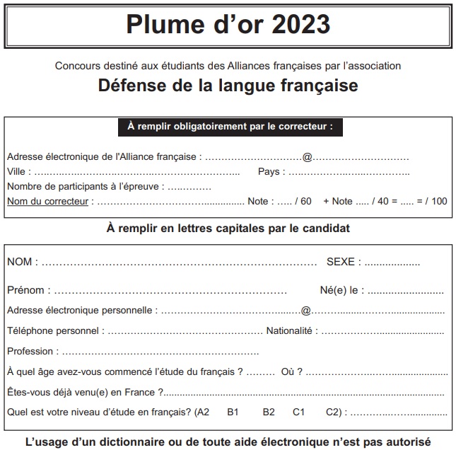 Epreuves de la Plume d'or 2023